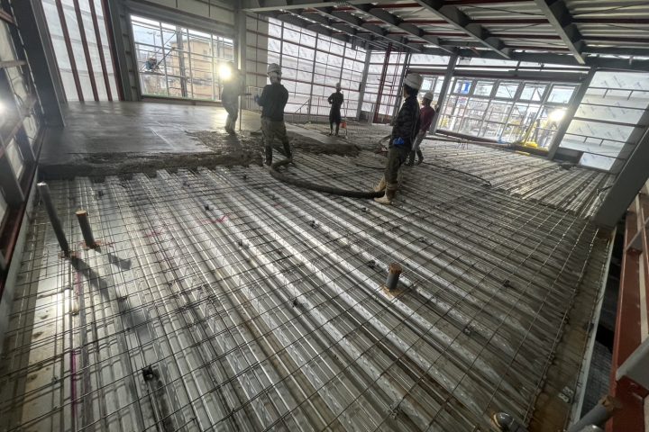 建物が大きくなればなるほど、土の出る量はすごくなりますよね!なので、大型の車両で排出していきます! 残土を山にしていき、重機で大型に積み込んでいきます!根切りが終わり次第、ステコン、ベースの段取りに入ります!ベース枠を起こし、鉄筋を組み、最初の打設になります。