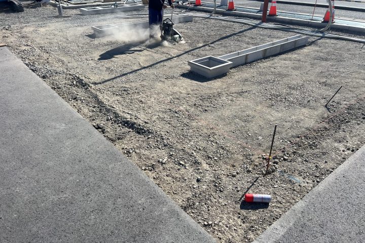 転圧が弱いと沈みやひび割れの原因ともなるので、