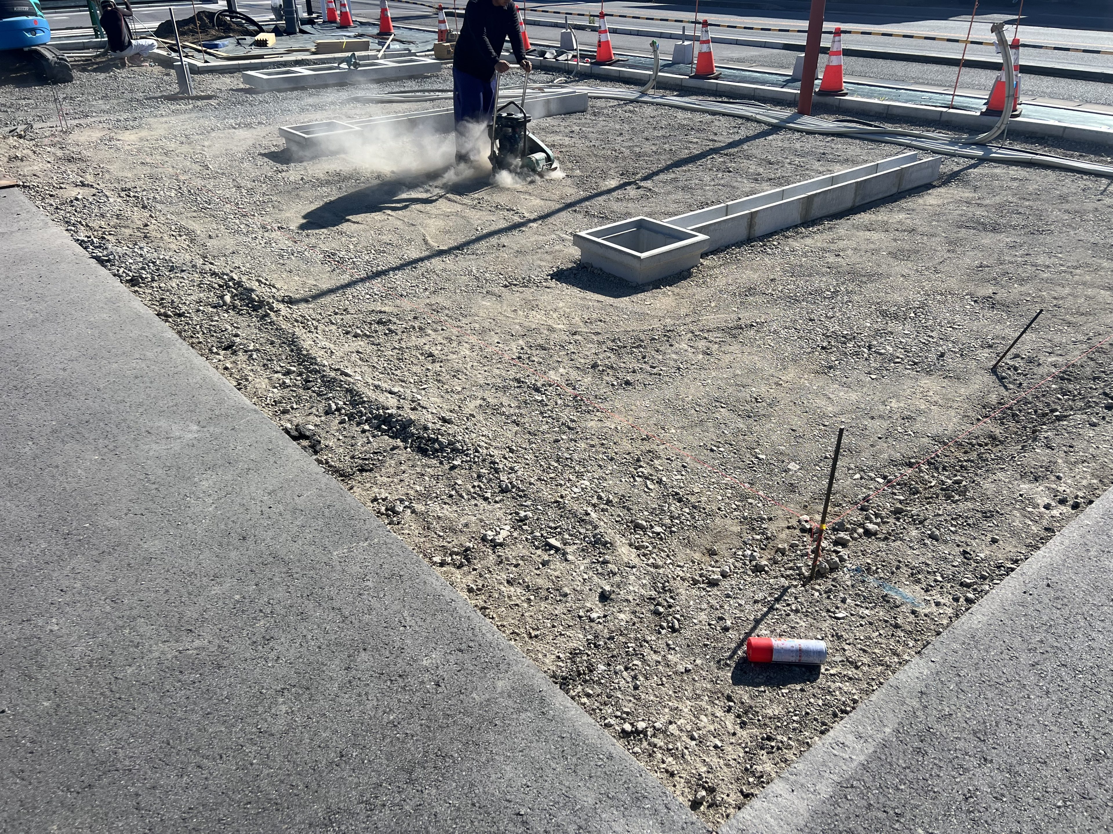 終わり次第、埋め戻し、プレート、ランマーで転圧をしていき、土間の下地までやっていきます!