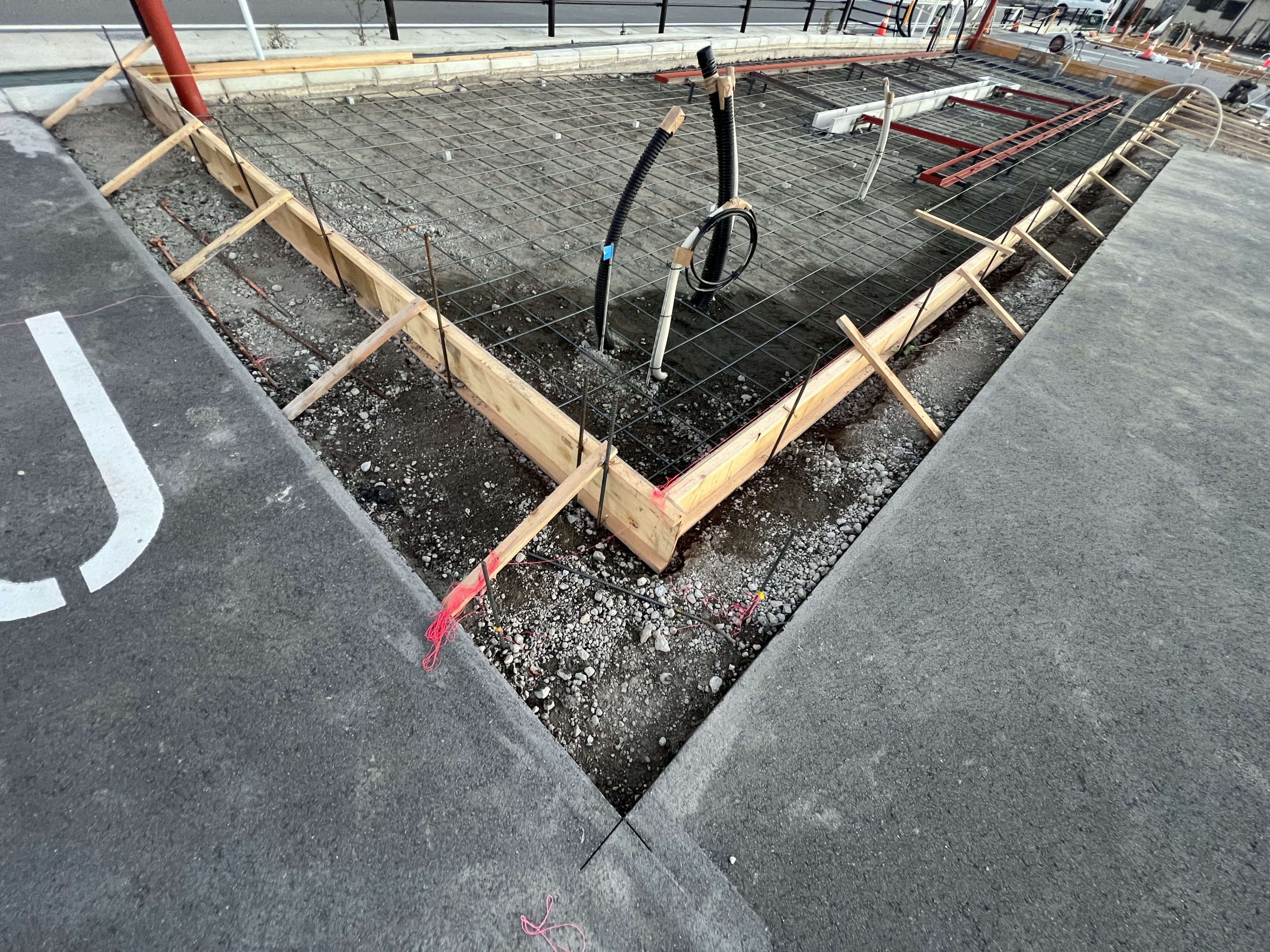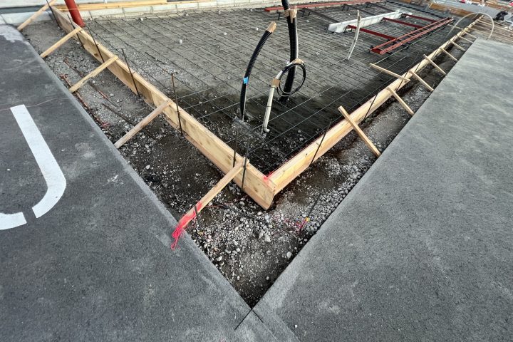 型枠に面木を打ったり、高さを出したり、鉄筋の被りを確認したりと、ここまでくれば確認に確認を重ねスムーズに打設ができるようにしていきます!